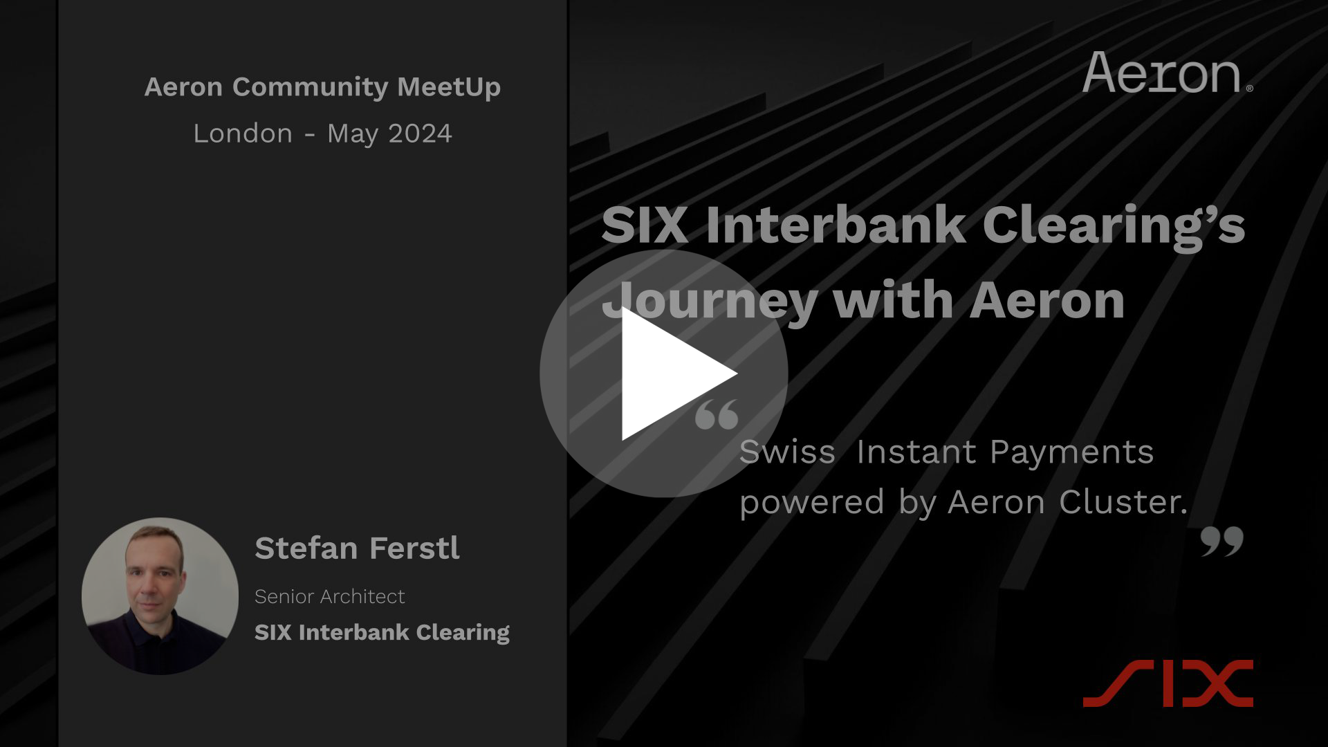 - Support: SIX Interbank Clearing received exceptional support from the Aeron team when implementing Aeron.